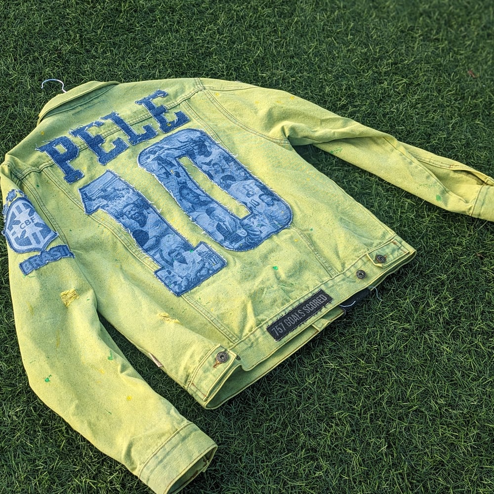We hand-select and reimagine materials through various techniques, making each garment truly one of a kind. Embrace individuality and eco-conscious fashion with our upcycled denim jackets. Make a statement while honoring the legendary Pele and contributing to a greener future.